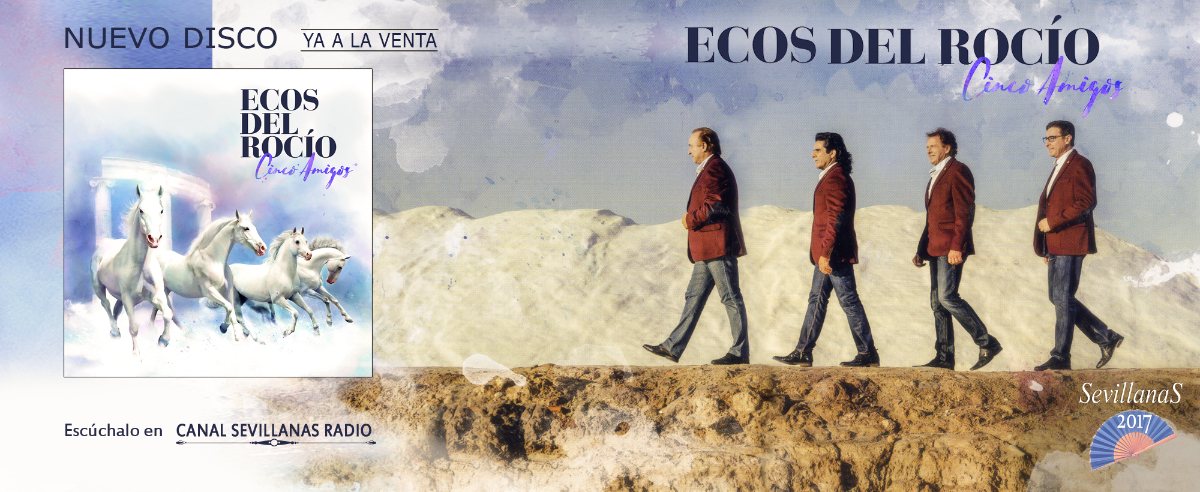 El grupo Ecos del Rocío, como es habitual, ya tienen disponible en el mercado su nuevo trabajo discográfico 2017. De la mano de Discos Senador, nos llega una obra titulada Cinco amigos. Un disco cargado de sorpresas, con temas que ya suponen un éxito entre sus incondicionales seguidores como son Tu niña la chica,Cinco amigos o el tema estrella de la obra, Nos separamos. También han querido homenajear a dos grandes figuras de nuestra música, como son Faustino Cabello del grupo Los Romeros de la Puebla y el compositor Padre Quevedo, interpretando en el disco el tema Tiempo detente.
