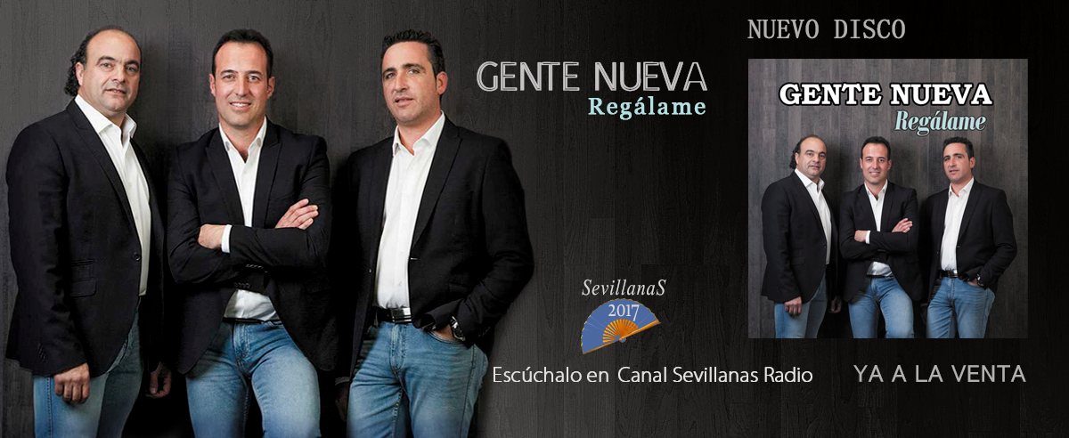 GENTE NUEVA son tres amigos extremeños que componen este grupo. Con un aire nuevo y actual lanzan al mercado un disco titulado REGÁLAME. Música andaluza y española, y por supuesto con un sonido extremeño que hará vibrar a todos los públicos. En este nuevo disco podrán encontrar sevillanas para bailar y de corte social.